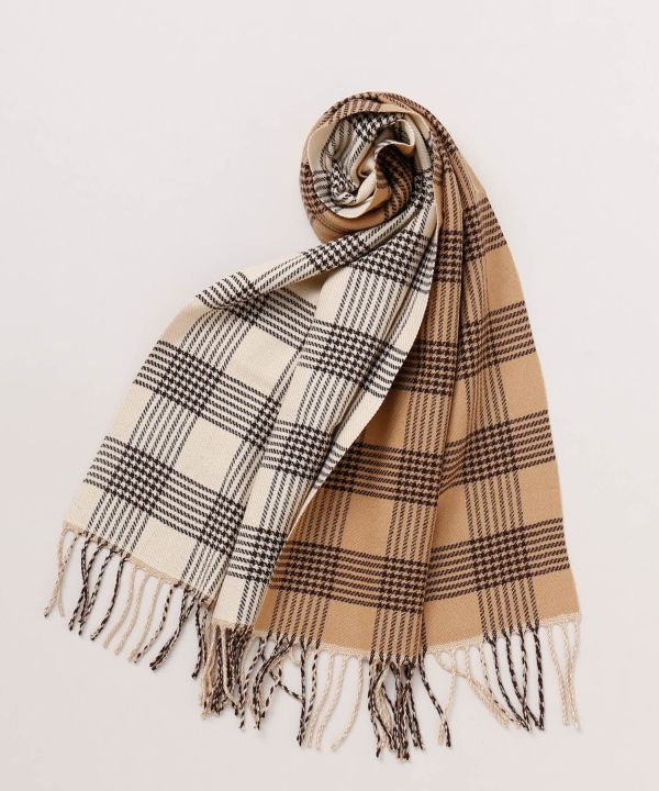 Syal dua sisi dengan motif kotak-kotak yang elegan. Hangat dan halus di kulit, teksturnya lembut, dan ringan.